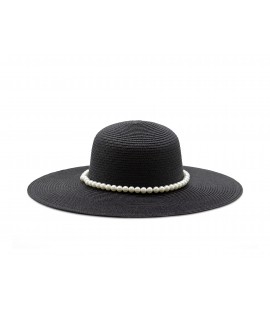 Ein Strohhut aus 100% Papier, breit und elegant mit einer Perlenkette als Dekoration. Einfach, aber mit großer Wirkung! -