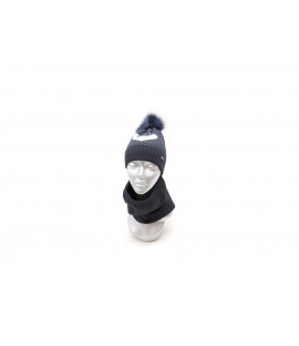 Zweiteiliges Set für Mädchen: Nylonmütze mit Bommel und passender Halswärmer. Anwesenheit eines Geschenkkartons. -