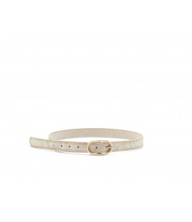 Elastischer Gürtel mit Details aus Kunstleder, mit tropfenförmiger Metallschnalle.