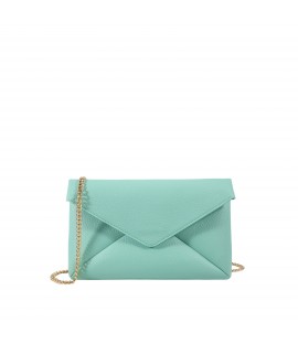 Mittelgroße Kunstleder-Clutch-Tasche mit einem Fach und Magnetverschluss. Goldfarbener Metallketten-Schulterriemen. -