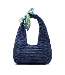 Umhängetasche für Frauen aus 100% Papier mit dekorativem, geknotetem Henkel aus Schal. Einzelnes Fach und Schulterriemen.