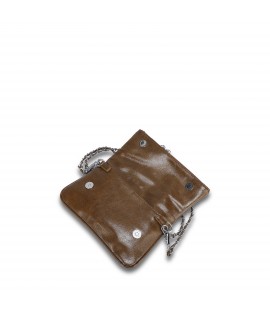 Umhängetasche aus Kunstleder mit geflochtenem Metallgriff. Klappe, die eine Innentasche mit Magnetverschluss und eine große Tasche mit Doppelreißverschluss verbirgt. Auf der Rückseite befindet sich eine weitere kleine Tasche mit Reißverschluss. Geflochtener Schulterriemen aus Kunstleder.