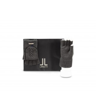 Set aus gestrickten Handschuhen, fingerloses Modell mit Überzug, elegantes und funktionales Design. Aus weichem, geflochtenem Stoff gefertigt, bieten sie Wärme und Komfort und lassen die Finger frei, um maximale Praktikabilität zu gewährleisten. Ideal für die kalte Jahreszeit, sind sie ein vielseitiges und trendiges Accessoire. Das Set wird in einer raffinierten Handtasche präsentiert, die sich auch perfekt als Geschenkidee eignet.