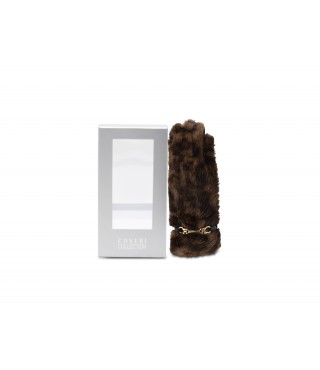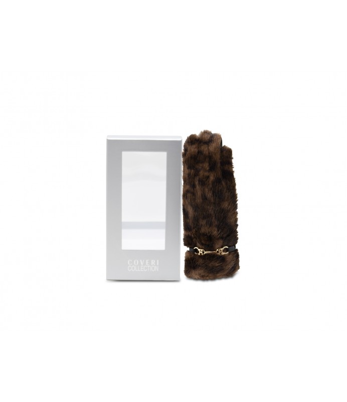 Handschuhe mit Kunstfellrücken und Schmuckelement am Handgelenk, speziell für die Verwendung mit Touchscreen-Geräten entwickelt.