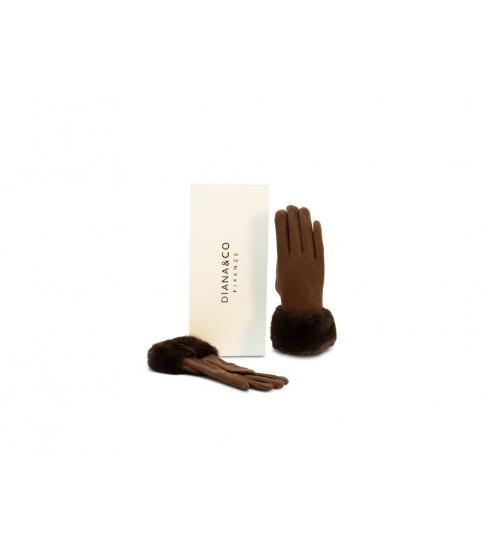 Bequeme und elegante Handschuhe mit Kunstfellbesatz am Handgelenk, speziell für die Verwendung mit Touchscreen-Geräten entwickelt.