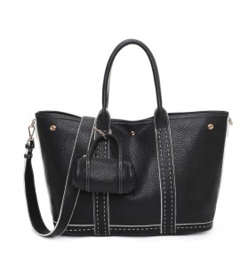 Kunstleder Umhängetasche mit hängenden Münzgeldbeutel und eine kleine Kupplung im Inneren.