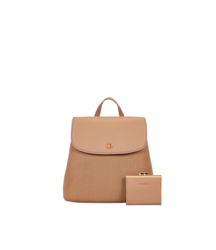 Chrisbella Set bestehend aus einem plissierten Kunstleder-Rucksack kombiniert mit einer kleinen Kunstleder-Münzbörse.
