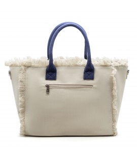 Umhängetasche aus Stoff mit konturierten Fransen und Sweet Years-Aufdruck auf der Vorderseite. Einzelne Reißverschlusstasche und Schulterriemen.