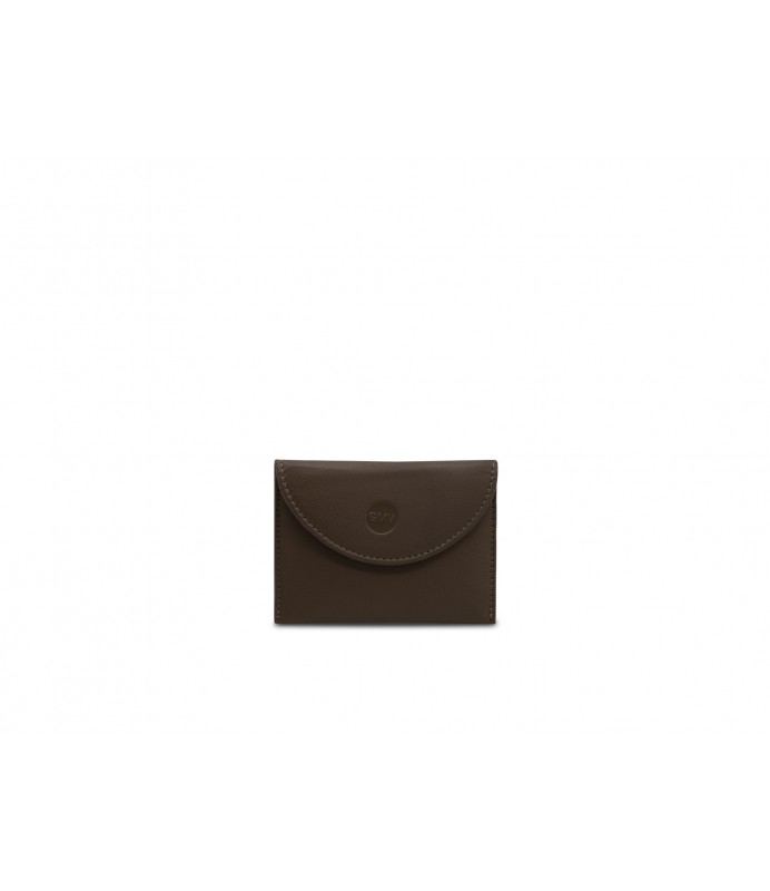Kleine Münzbörse aus echtem Leder mit Logo auf der Verschlussklappe. Hergestellt in Indien.