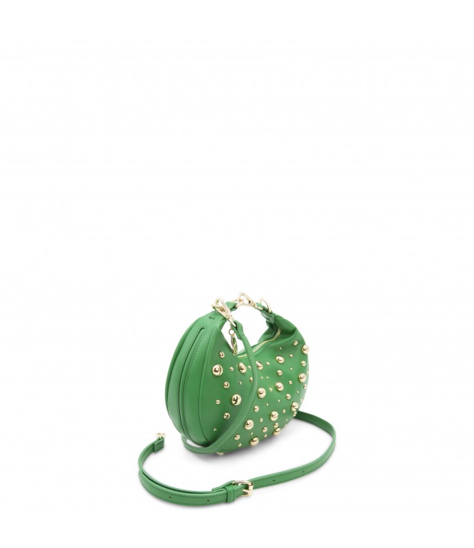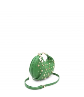 Handtasche aus Kunstleder mit goldfarbenen Metallnieten auf der Vorderseite und 'LOVE'-Einsatz am Boden. Mit abnehmbarem Schulterriemen und Reißverschluss.