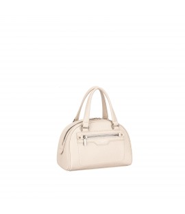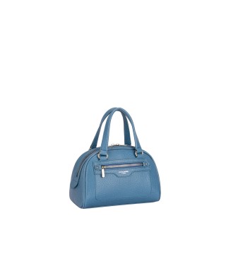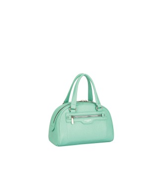 Halbsteife Kunstlederhandtasche. Vorhandensein einer Tasche auf der Vorderseite. Schriftzug auf der Vorderseite.