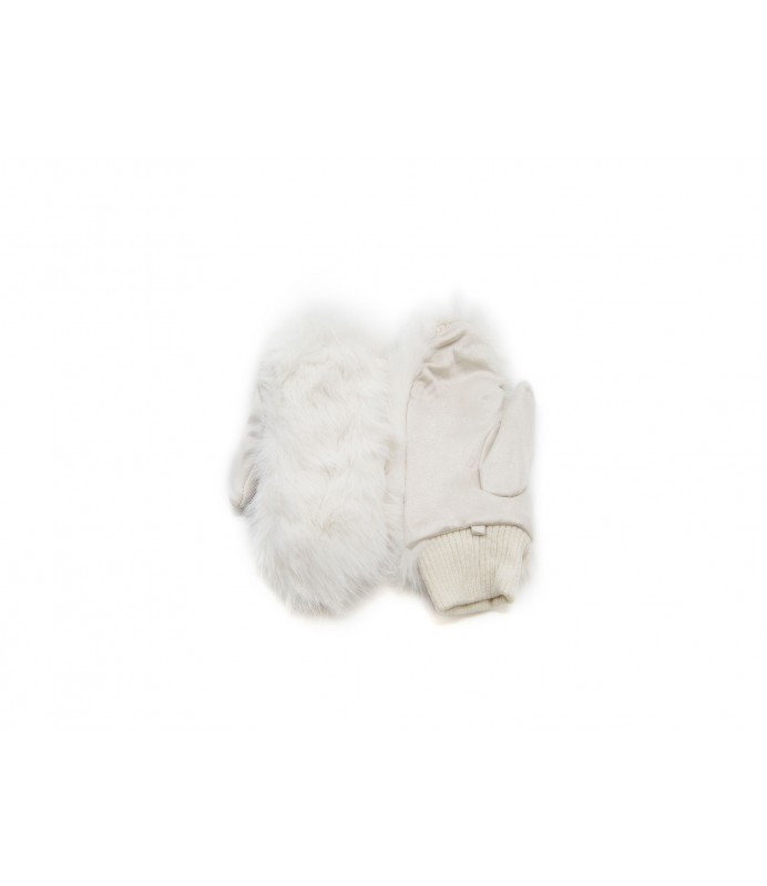 Einfarbige geschlossene Handschuhe mit Kunstpelz an der Spitze. Ausgestattet mit gestrickter Stulpe.