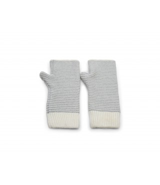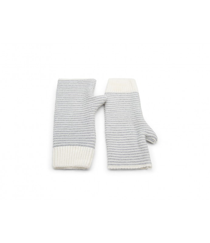 Zweifarbig gestreifte Ärmelhandschuhe mit einfarbigem Strickbündchen.