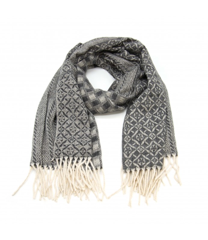 Schal aus 100 % Polyester mit Fransen und geometrischem Aufdruck, geeignet für Männer und Frauen. Er wird in einer Reißverschlusstasche verkauft, was ihn zu einer perfekten Geschenkidee macht.