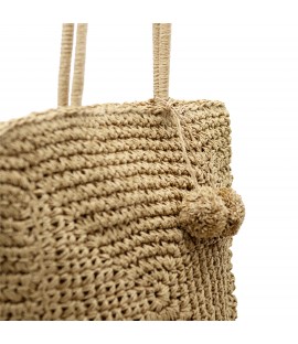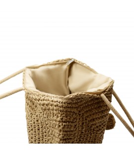 Umhängetasche für Frauen, Stroh-Effekt aus Papierfaser. Einzelnes Fach mit Reißverschluss. Abnehmbarer Schulterriemen.