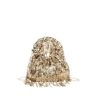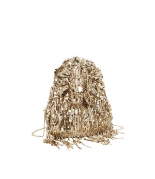 Einfarbige, mit Pailletten besetzte Clutch-Tasche mit gewelltem Griff und Schulterriemen aus Metallkette, Kassandra & Co.