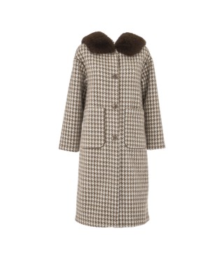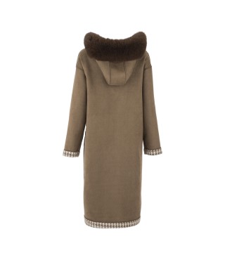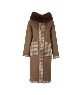 Beidseitig tragbarer langer Wintermantel mit zwei großen Seitentaschen und einem Kragen aus Kunstfell.
