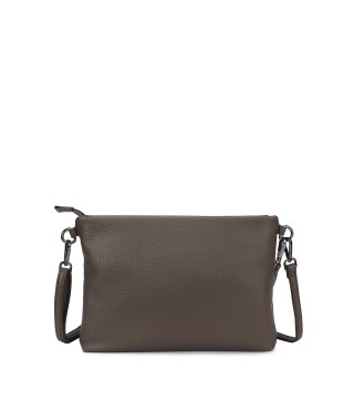Faux leather bag with zip closure. It has both a wrist strap and an adjustable faux leather shoulder strap.
