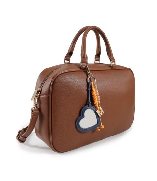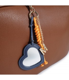 This elegant handbag with a removable shoulder strap is the ideal accessory for any occasion. Featuring a refined and compact design, it offers enough space for your daily essentials. The addition of a decorative heart-shaped charm with a mirror and tassels adds a touch of originality and style.