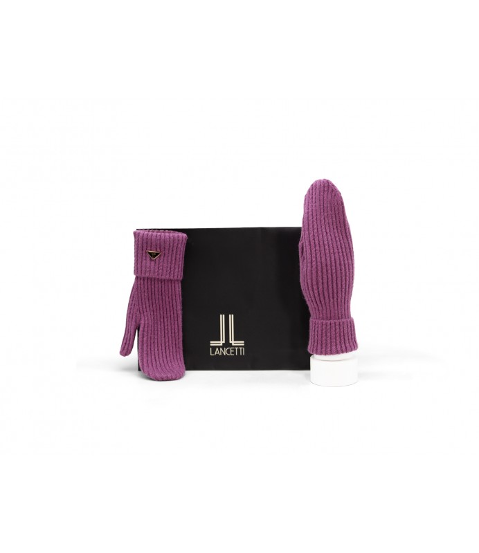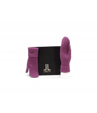 Set of knitted gloves with an elegant and functional design. Made from soft ribbed fabric, they offer warmth and comfort. Ideal for the cold season, they are a versatile and trendy accessory. The set comes in a refined bag, perfect as a gift idea.