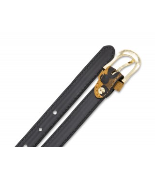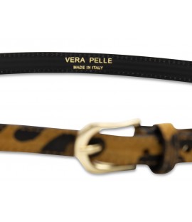 Made in Italy leopard suede denim belt with small round metal buckle in gold color