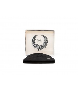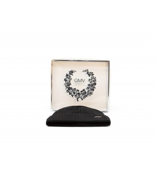 Knitted beanie made from 50% acrylic, 27% polyester, and 23% polyamide.
