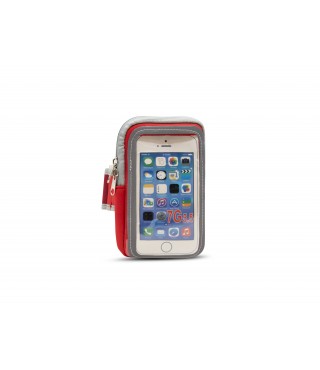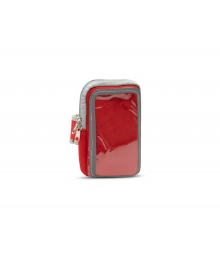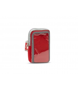 Nylon and solid-color cell phone holder with transparent part in the front. Zipper closure with double slider. In the back Velcro band with adjustable closure.
