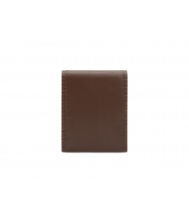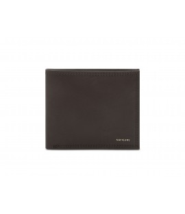 Genuine leather Navigare wallet with interior in a contrasting color. Features coin pocket, bill compartment and several card pockets. Silver metal lettering on the front -