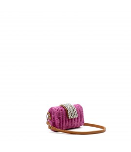 Beach bag made of paper with polyester-lined interior. Single compartment with leatherette buckle, embellished with a small jewel. Presence of a shoulder strap. Made in PRC.