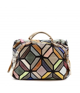 Bolso de mujer en piel auténtica patchwork multicolor Made in Italy. Con cierre de cremallera. Bandolera ajustable. -