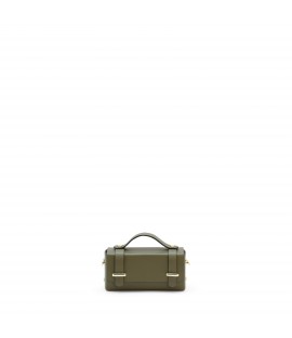 Mini bolso de piel auténtica con doble cierre magnético en la solapa. Además del asa, también cuenta con un cinturón metálico dorado. -