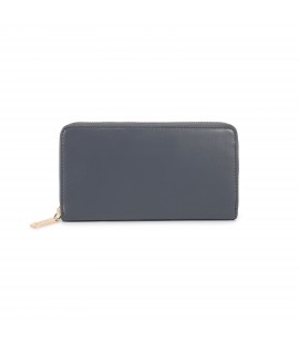Cartera grande con cierre de cremallera. En el interior, el espacio está dividido por un bolsillo central con cremallera para las monedas, mientras que a los lados hay espacio para las tarjetas.