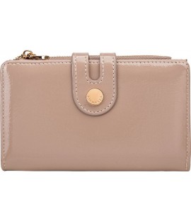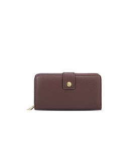 Práctica y compacta cartera de PU. Un compartimento para el pasaporte con cierre de botón. Un compartimento para monedas con cierre de cremallera -