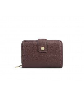 Cartera sintética. Equipada con un compartimento para tarjetas con cierre de botón y un compartimento para monedas con cierre de cremallera. -