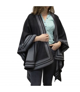 Poncho de invierno para mujer con capucha y cinturón de sujeción en la parte delantera. -