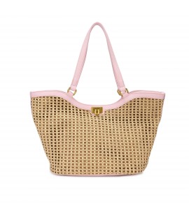 Bolso de rafia con detalles en polipiel. Asa y bandolera desmontables. Un solo compartimento con cremallera.