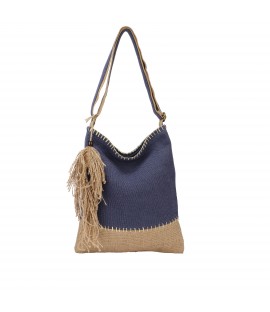 Bolso de hombro de lona de un solo compartimento con cremallera. Fabricado en la República Popular China.