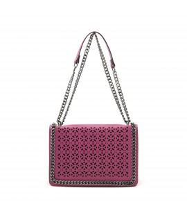 Pequeño bolso de piel auténtica fabricado en Italia con correa metálica para el hombro. -
