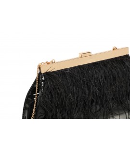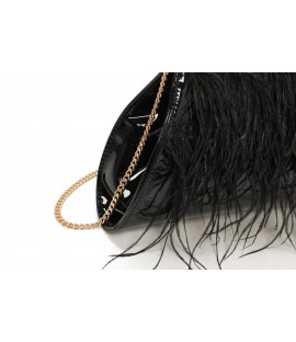 Eleva tu estilo con este elegante bolso de mano, que presenta un diseño refinado y detalles de plumas que añaden un toque de glamour y sofisticación. Perfecto para noches especiales y ocasiones que requieren un accesorio distintivo.