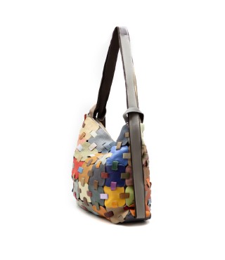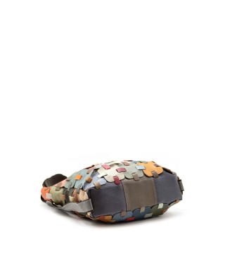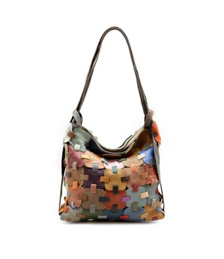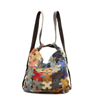 Bolso bandolera de cuero que también se puede llevar como mochila. Fabricado en la India
