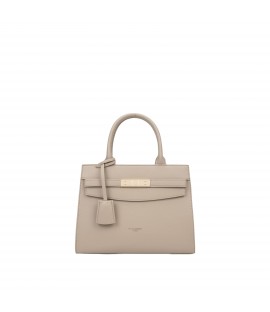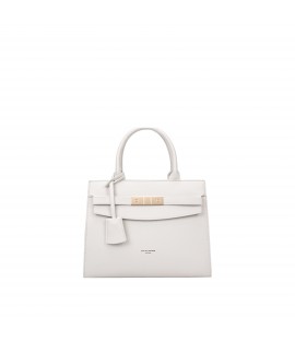 Bolso de mano semirígido en polipiel de color sólido. Logotipo en la parte delantera.