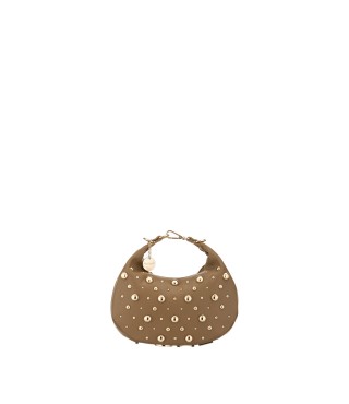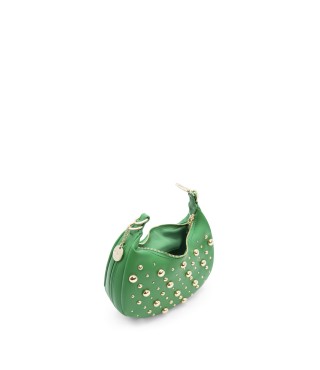 Bolso de mano de polipiel con tachuelas metálicas doradas en la parte delantera e inscripción "LOVE" en la base. Con bandolera extraíble y cierre de cremallera.
