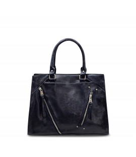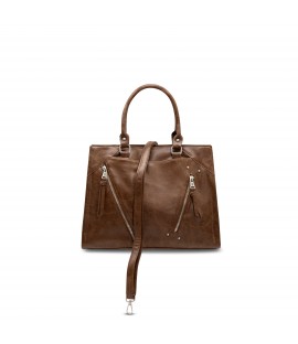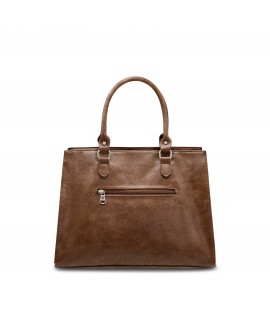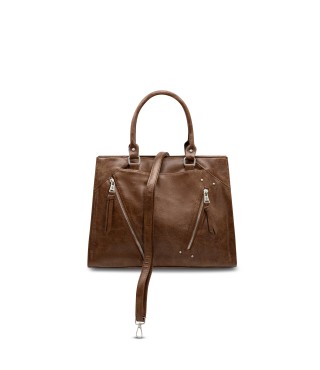 Bolso de hombro con asas dobles y correa ajustable. Cuenta con un cierre principal de cremallera y bolsillos exteriores con cremallera, que añaden practicidad y un detalle funcional al diseño. Su estructura espaciosa lo hace ideal para el uso diario.