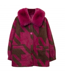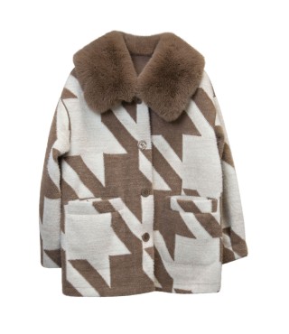 Abrigo con estampado de pedipul y solapa de piel sintética.