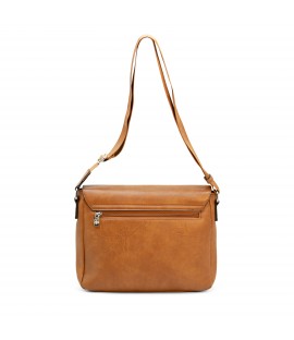 Bolso de hombro de PU con solapa que oculta un doble cierre magnético y un cierre de cremallera. En la parte trasera hay un práctico bolsillo con cierre de cremallera.