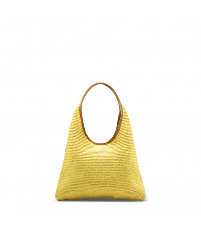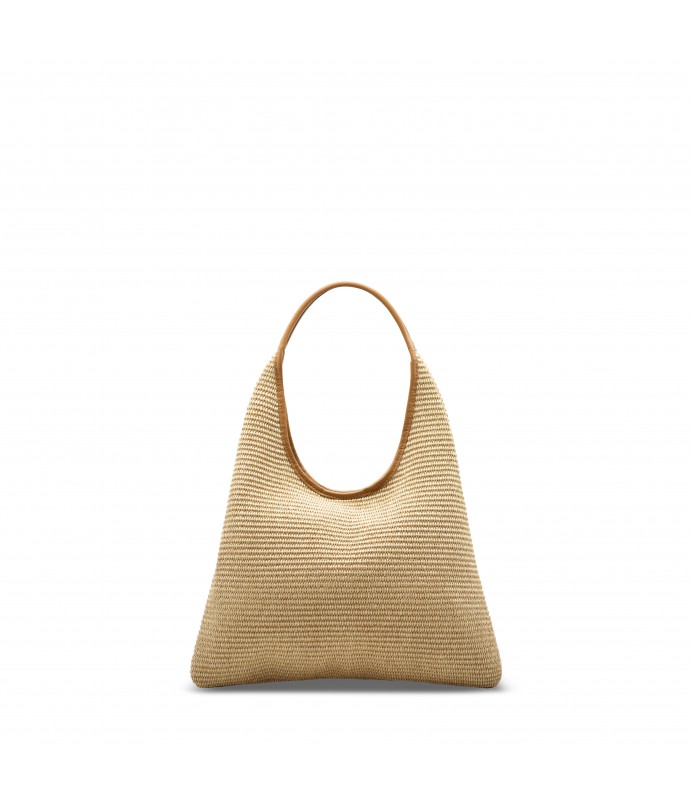 Bolso de rafia con detalles de piel auténtica Made in Italy. Un solo compartimento con cierre magnético e interior forrado de tela.