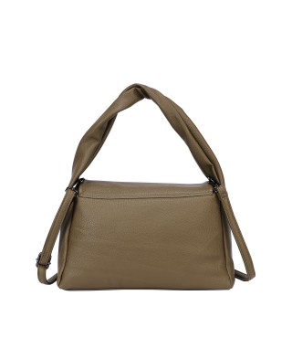 Sac en simili cuir avec rabat et fermeture magnétique et zip. Poignée de longueur moyenne et bandoulière réglable en simili cuir.