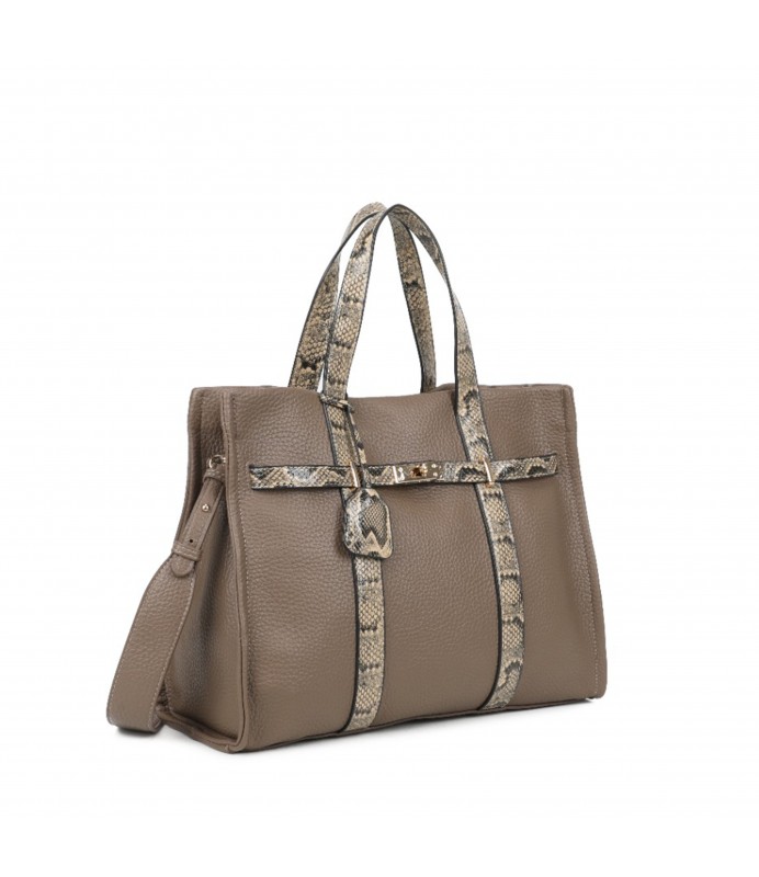 sac en simili-cuir doux, avec des détails effet python. Spacieux et polyvalent, parfait pour toute occasion. Design raffiné, avec fermeture éclair et poignées réglables, idéal pour ajouter du style à chaque tenue. Un accessoire tendance et de qualité, durable dans le temps.