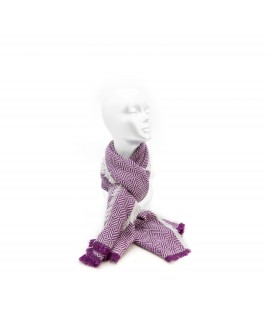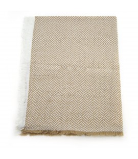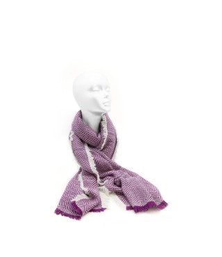 Foulard bicolore à motif géométrique avec bord filet. Composition : 78%PC 9%WO 4%VI 4%WP 3%PL 2%PA