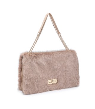Sac à bandoulière en fausse fourrure douce avec bandoulière chaîne et fermoir tournant. Un accessoire distinctif pour compléter votre look avec une touche de style.